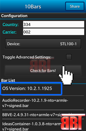 En este ejemplo la configuración de Telcel en México para un Z10 modelo STL100-1, posteriormente click en “check to bars!”